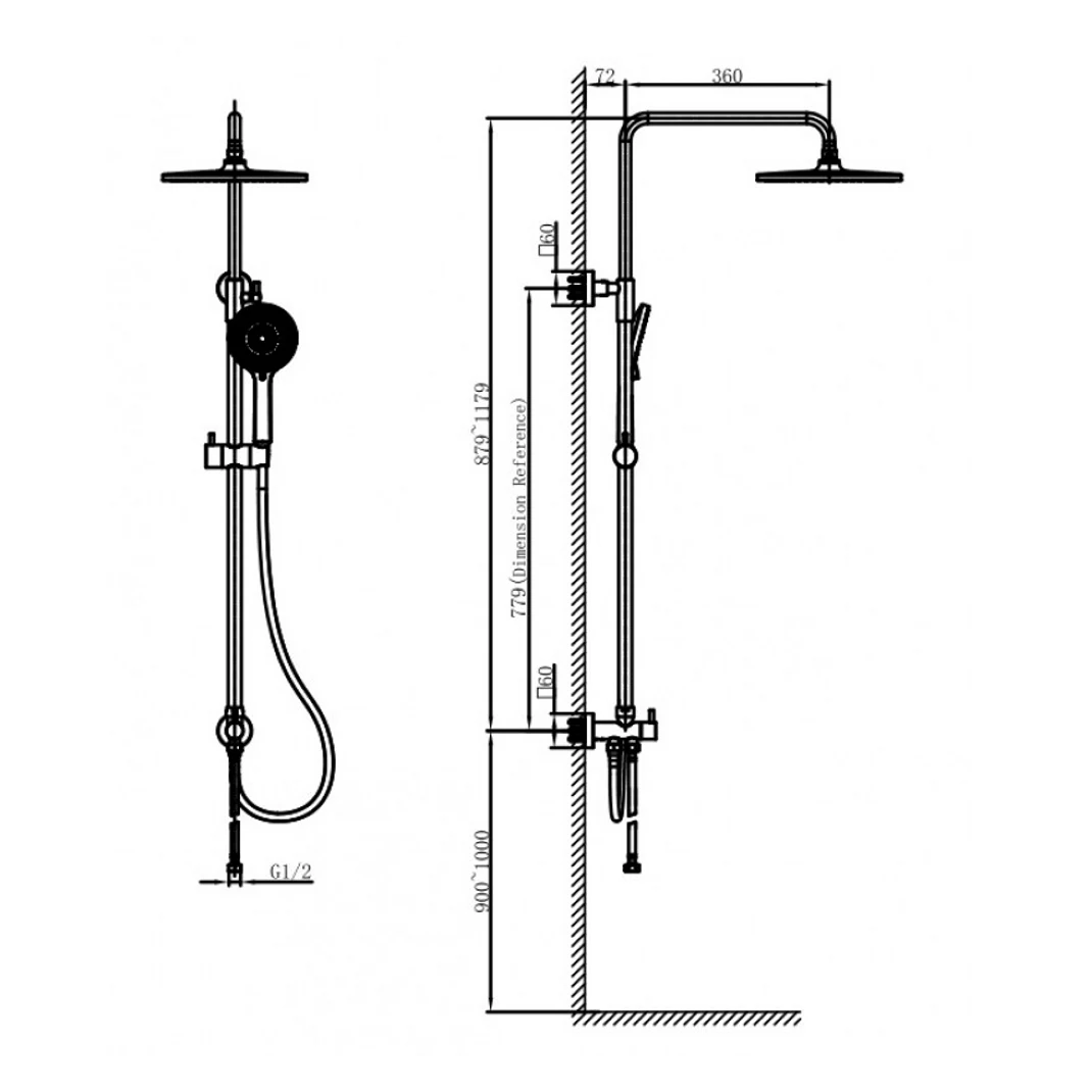 Διαθέτει 2 εξόδους νερού για μεγαλύτερη ευελιξία, ενώ η ρυθμιζόμενου ύψους κολώνα επιτρέπει εύκολη προσαρμογή ανάλογα με τις ανάγκες του χρήστη. Η στρόγγυλη κεφαλή ντους Ø25.4cm από ABS εξασφαλίζει άνετη και ομοιόμορφη ροή νερού για ευχάριστη εμπειρία ντους.