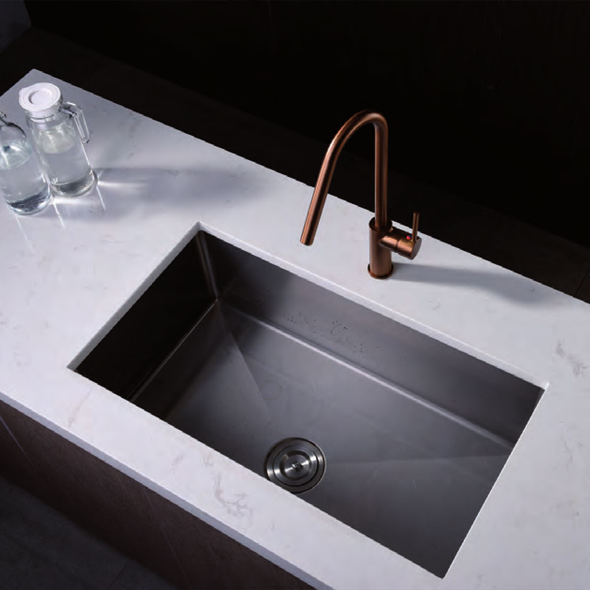 Η μπαταρία κουζίνας Νatalia Rose Gold, μπορεί να τοποθετηθεί είτε στον πάγκο της κουζίνας, είτε απευθείας στον νεροχύτη.