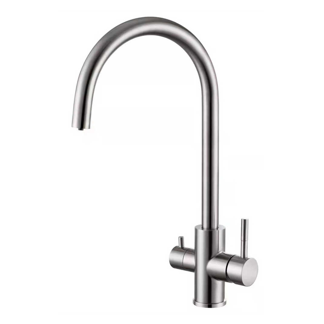- Ο μοντέρνος σχεδιασμός της με ψηλό, περιστρεφόμενο στόμιο προσφέρει άνεση στη χρήση και πρακτικότητα στον καθαρισμό του νεροχύτη, ενώ ο διπλός μοχλός επιτρέπει τον εύκολο διαχωρισμό ανάμεσα σε κρύο/ζεστό νερό και φιλτραρισμένο.