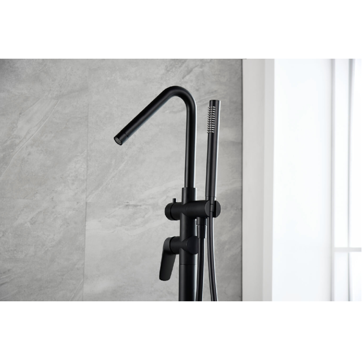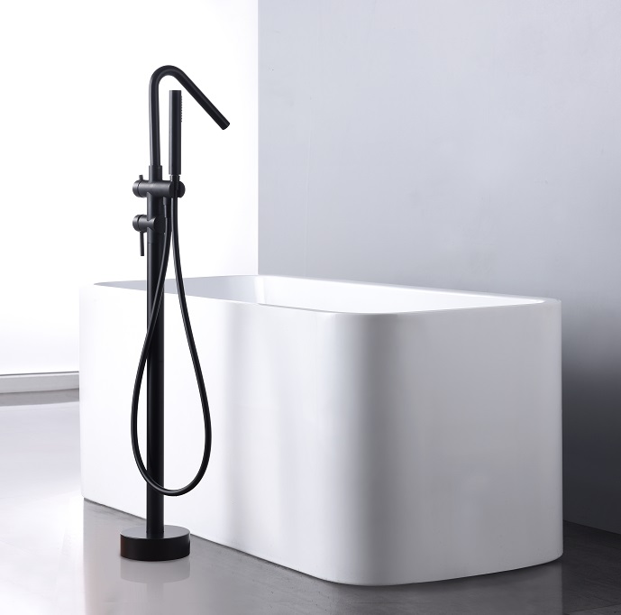 Μπαταρία Μπανιέρας Δαπέδου Oriana Matte Black με σταθερό ύψος στήλης , κατάλληλη για να σας προσφέρει ένα