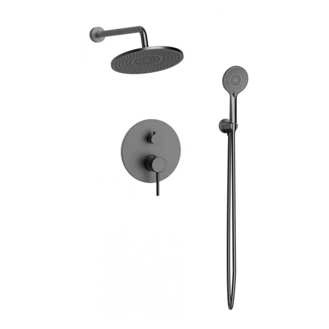 Συνδυάστε υψηλή ποιότητα κατασκευής και εκλεπτυσμένη αισθητική με το αναμικτικό σετ εντοιχισμού ντους Gun Metal. Διαθέτει μίκτη με εκτροπέα 2 εξόδων νερού κατασκευασμένο από ανοξείδωτο ατσάλι 304, προσφέροντας αξιοπιστία και σταθερή απόδοση στο χρόνο. Περιλαμβάνει παροχή με τηλέφωνο, στήριγμα και σπιράλ, και βραχίονα με στρόγγυλη κεφαλή ντους Ø25cm. Το φινίρισμα με τεχνική επεξεργασία PVD προσφέρει αξεπέραστη ανθεκτικότητα στις φθορές της καθημερινής χρήσης.