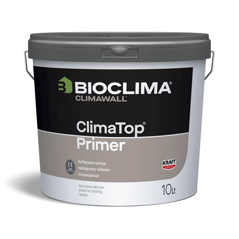 Το ClimaTop Primer είναι ένα οργανικό αστάρι υδατικής διασποράς, με μικρούς χαλαζιακούς κόκκους, έτοιμο προς χρήση, που δημιουργεί μία ελαφρώς αδρή επιφάνεια ενισχύοντας την πρόσφυση, την πλήρωση και την ομογενοποίηση του υποστρώματος, ώστε να ακολουθήσει η εφαρμογή των τελικών επιχρισμάτων παστώδους μορφής.