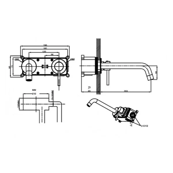 Μπαταρία Νιπτήρος Royal Chrome Εντοιχισμού